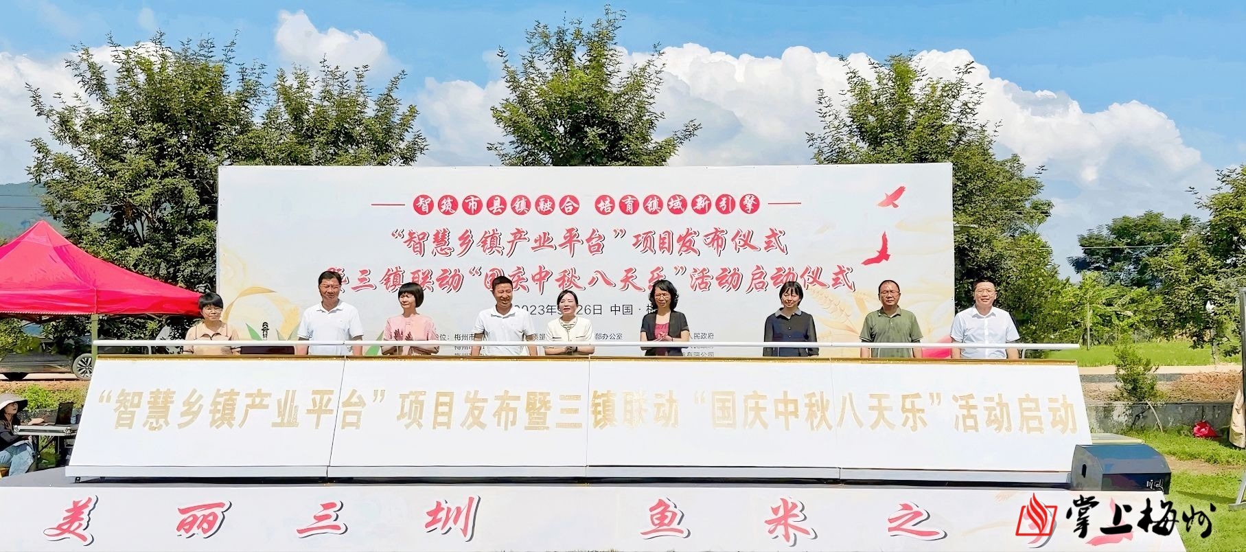掌上梅州讯 9月26日上午,“智慧乡镇产业平台”项目发布仪式暨三镇联动“国庆中秋八天乐”活动在蕉岭县三圳镇举行。蕉岭县政府、广东客都文旅有限公司、市百千万工程指挥部办公室、梅江区西阳镇、蕉岭县三圳镇、大埔县大东镇等相关负责人参加仪式。