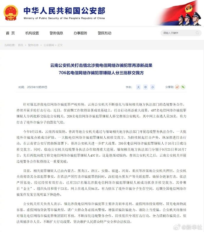 针对缅北涉我电信网络诈骗犯罪严峻形势,云南公安机关不断强化与缅甸相关地方执法部门的边境警务合作,持续开展多轮打击行动。近日,在前期工作取得显著成效基础上,打击行动再添重大战果,497名电信网络诈骗犯罪嫌疑人分两批移交临沧公安机关,209名电信网络诈骗犯罪嫌疑人移交普洱公安机关,其中网上在逃人员26名,有力打击了境外诈骗分子的嚣张气焰。