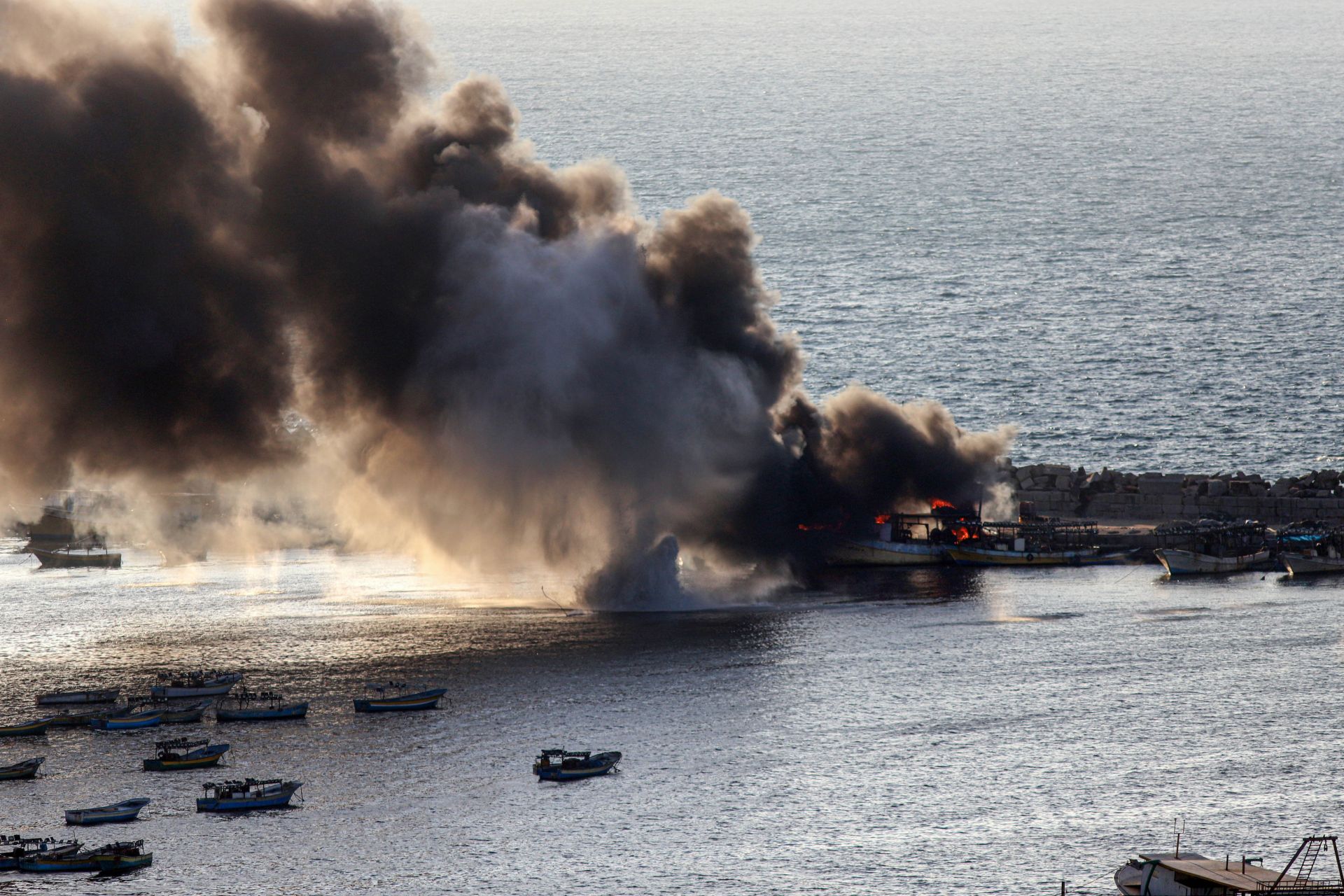 10月10日,加沙城港口遭以色列袭击后升起浓烟。新华社发(里泽克·阿卜杜勒贾瓦德 摄)
