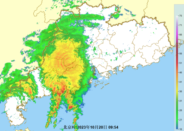 在20日早,东路冷空气已经抵达粤北,预计白天继续南下。低层冷空气将台风不断向南挤压,导致了这次转向,也使得暴雨区东扩,20日阳江、江门等地将有暴雨到大暴雨局部特大暴雨,湛江、茂名、云浮、肇庆有大到暴雨。