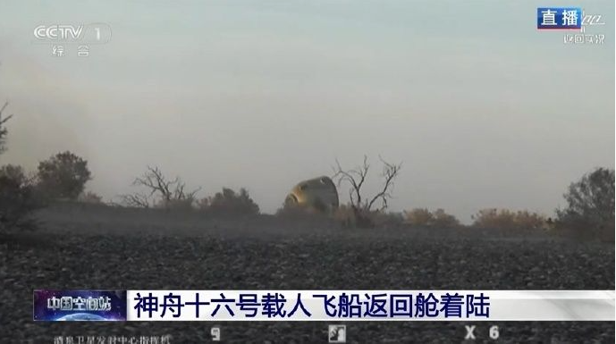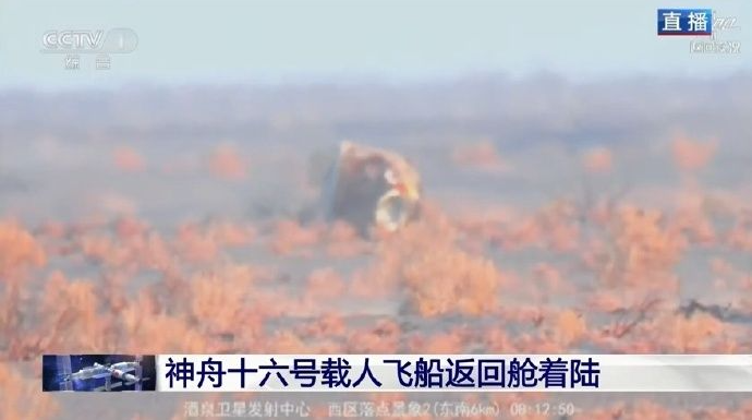 神舟十六号载人飞船返回舱在东风着陆场成功着陆。