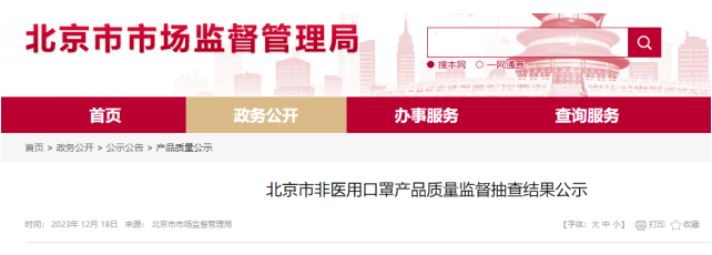 中国消费者报微信公号12月19日消息,12月18日,北京市市场监管局通告非医用口罩产品质量监督抽查结果,在70组批样品中,检出17组批样品质量不符合相关标准。