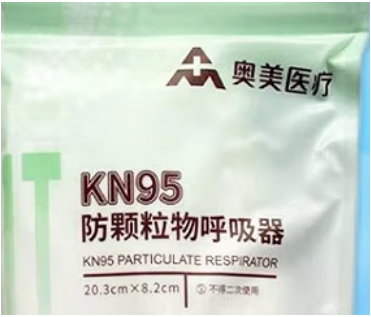 ②奥美医疗用品股份有限公司生产的“奥美医疗”KN95防颗粒物呼吸器(型号20.3cmX8.2cm);