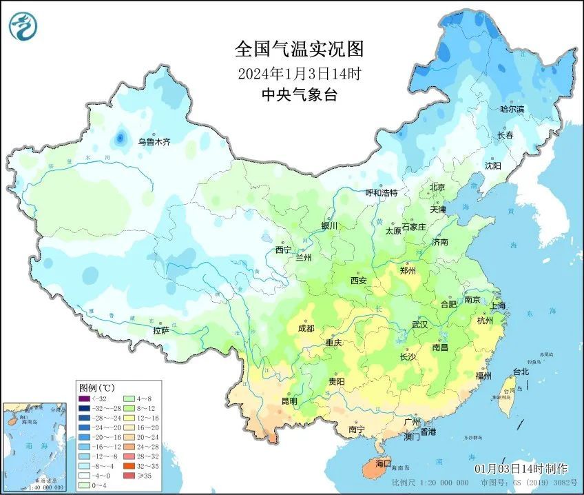 昨日(1月3日),我国中东部大部地区气温进入回升通道。随着南方大部天气放晴,江西、湖南、安徽等地成为升温最猛的区域。从3日14时气温实况来看,长江以南地区最高气温普遍超过10℃,陕西南部、河南气温也在10℃以上。