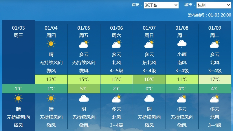 相较于北方,南方的降温将稍微滞后一些,幅度不大。5日前后,南方气温还将达到近期高点,之后随着阴雨天气增多,最高气温有所下滑,但大多还在10℃以上,总体仍然偏暖。像是杭州,5日最高气温可达15℃,更像是常年三月的气温;7日最高气温将降到10℃,大家要注意添衣保暖。