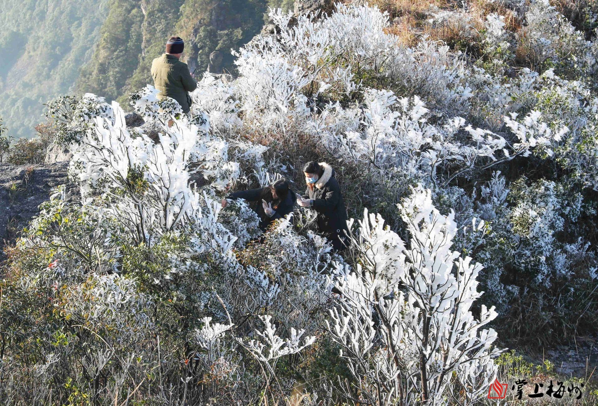 日前,梅县区雁洋镇阴那山上的五指峰景区出现雾凇景观。(高讯 摄)