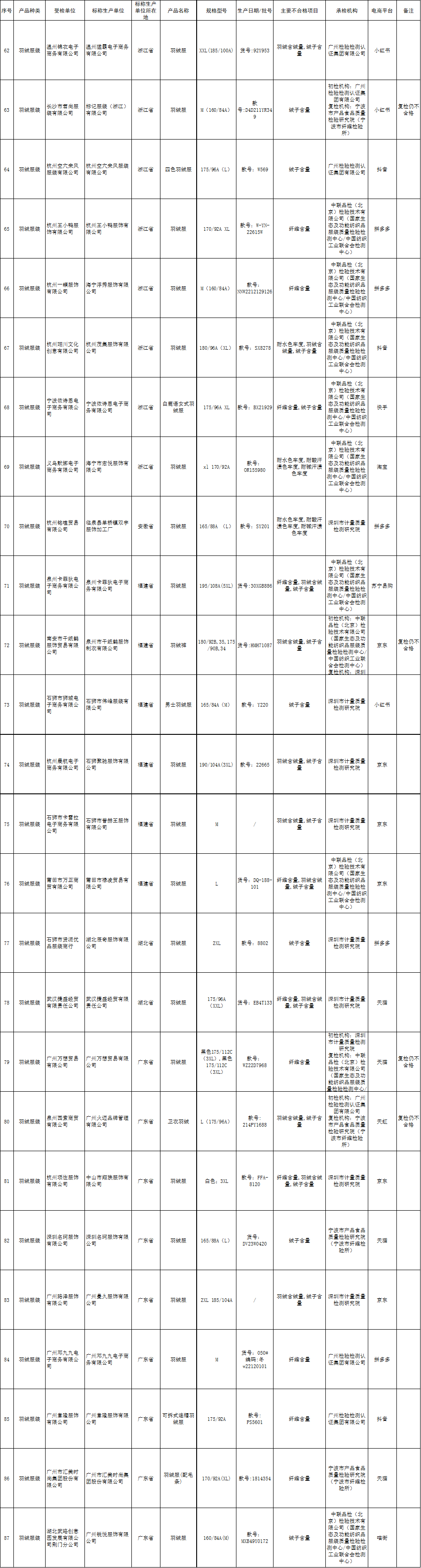 据通报,此次抽查185批次产品涉及广东、浙江、福建等13个省份,183家生产单位抽查发现,26批次产品不合格。其中有18批次产品绒子含量不合格,11批次产品羽绒含绒量不合格,11批次产品纤维含量不合格,3批次产品耐水色牢度不合格,2批次产品耐酸汗渍色牢度不合格,2批次产品耐碱汗渍色牢度不合格。
