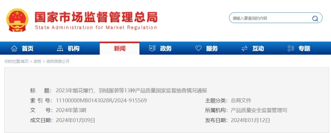 近日,市场监管总局通报185批次羽绒服装产品质量国家监督抽查情况,其中26批次产品不合格。