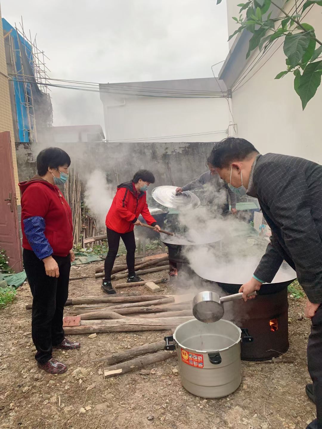 鸿都社区新时代文明实践站开展“浓情腊八节,粥到暖人心”志愿活动,为奋战在一线的环卫工人送上热气腾腾的腊八粥。(钟小丰 摄)