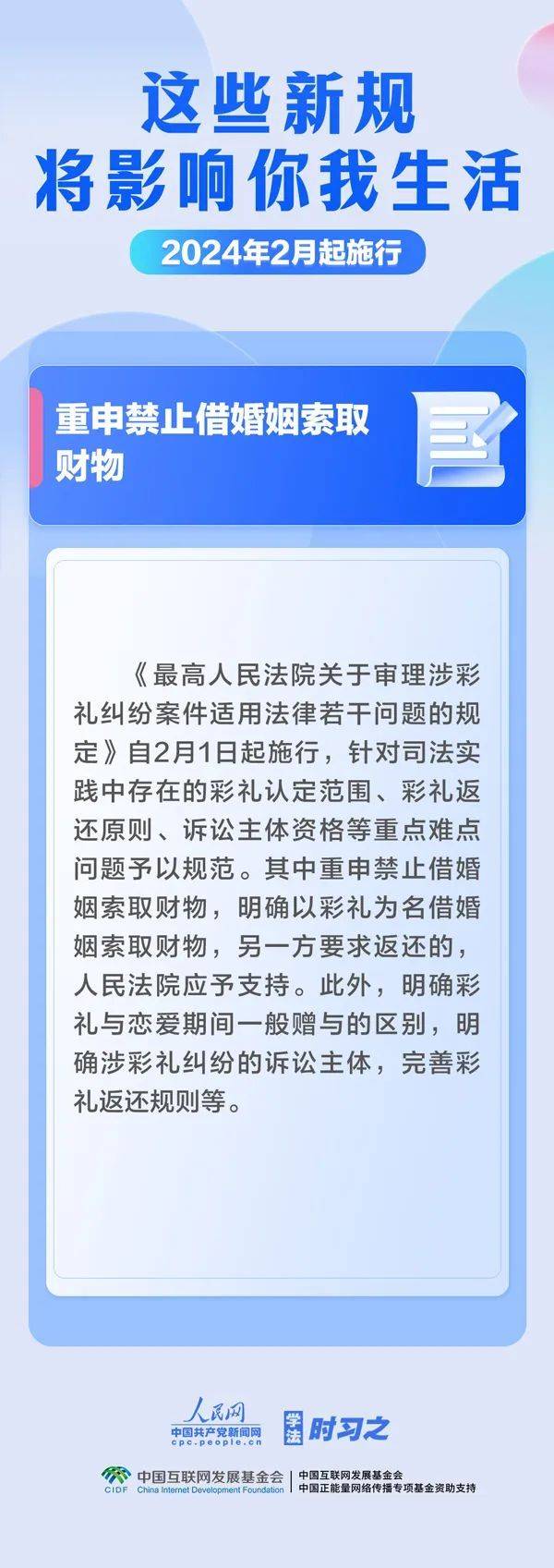 这些新规,明起实施! 2024-01-31 09:30 南方+ 0 重申禁止借婚姻索取财物 有效增加保障性和商业性租赁住房供应 加强地理标志产品保护 …… 2月起,这些新规施行 将影响你我生活 编辑:张茵晴(实习) 罗欢欢 审核:蔡颜颜