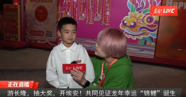 19时过后,到了翘首以盼的抽奖环节。随着赵晓燕按下开奖键,大屏最终定格,一名广东游客成为今日“锦鲤”。工作人员将联系这位幸运游客参加领奖。