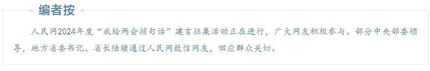 大家好!全国两会召开之际,很高兴通过人民网与大家交流。