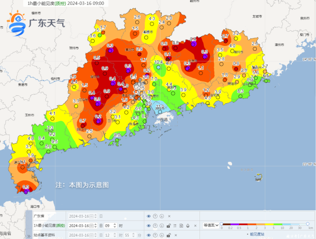 15日白天到16日早晨,粤北和肇庆市县出现了小雨局部中雨,其余市县阴天出现了分散小雨和(轻)雾;大部市县最低能见度低于5公里,粤北和珠江三角洲中西部市县能见度低于1公里。