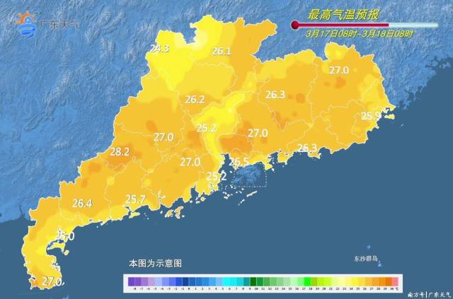 17日,粤北和肇庆市县多云到阴天,有(轻)雾和零星小雨,其余市县多云间阴天,有(轻)雾。最低气温:粤北和粤东市县17℃~19℃,其余市县19℃~22℃。