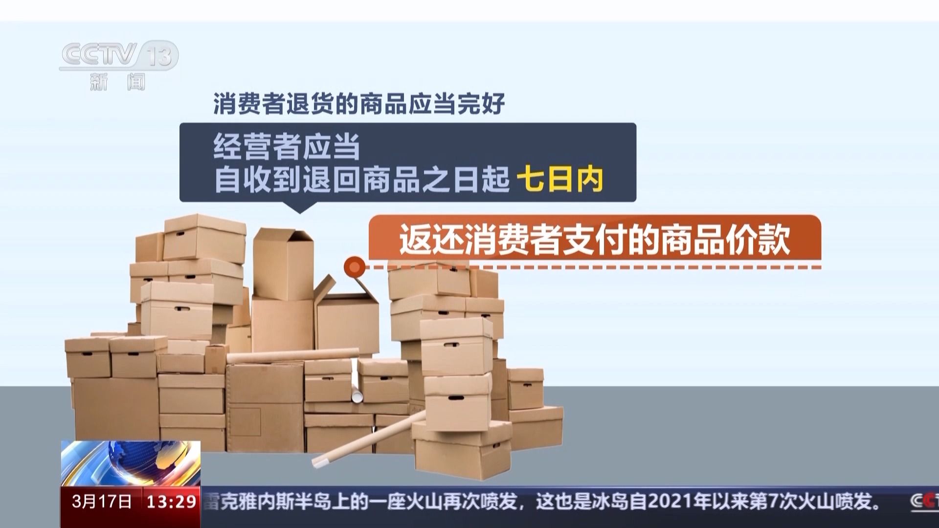 消费者退货的商品应当完好。经营者应当自收到退回商品之日起七日内返还消费者支付的商品价款。