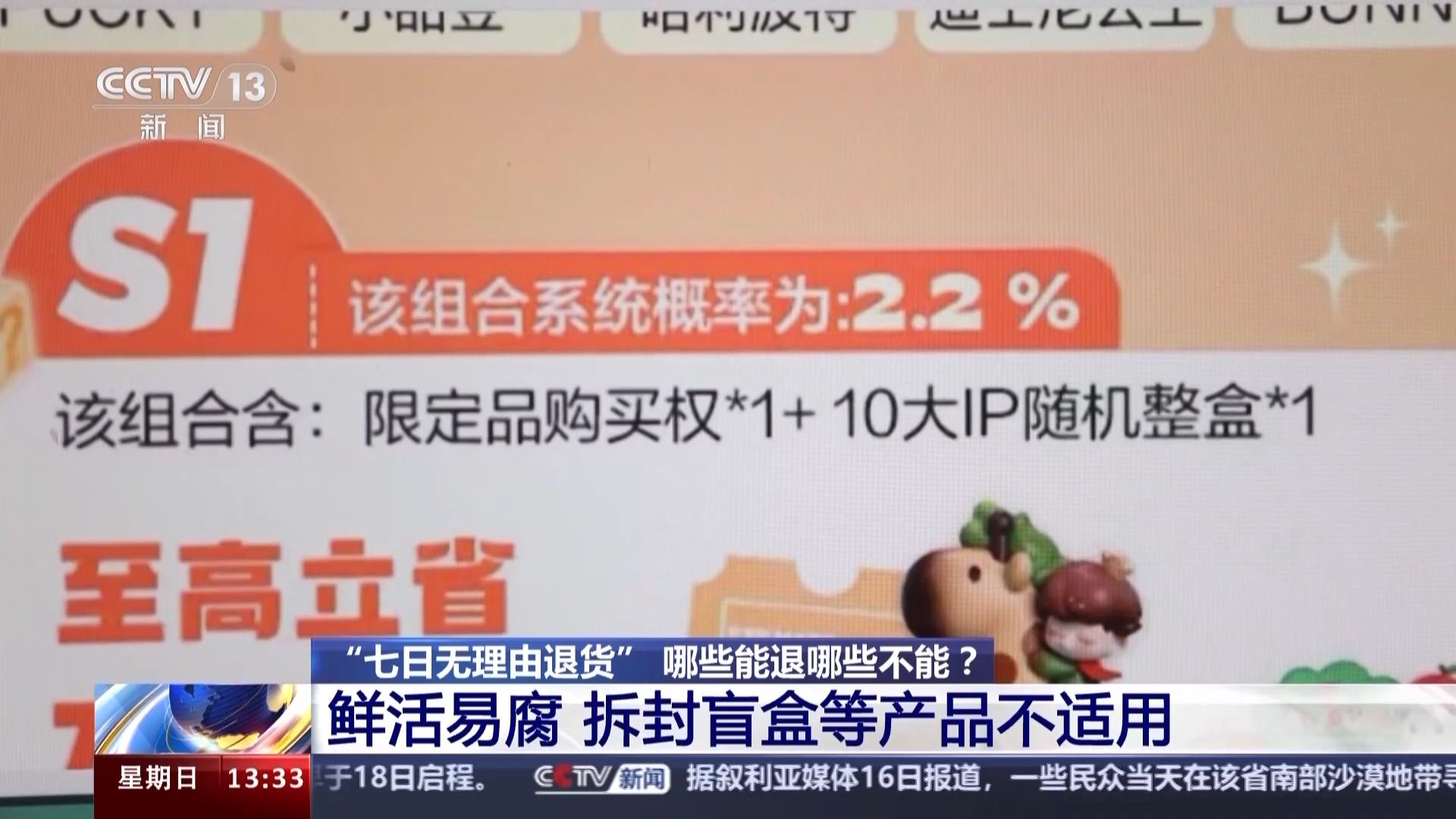 北京互联网法院法官助理 张亚光:我们认为盲盒类产品它最重要的特性就在于“盲”这个特性,就在于拆盲盒那一瞬间消费者所能获得的一种惊喜感和满足感。它如果已经被线上拆封的情况下,那它内容已经被知晓,我们认为其商品价值已基本实现,在这种情况下,我们认为盲盒类产品不宜适用七天无理由退货这一规定。