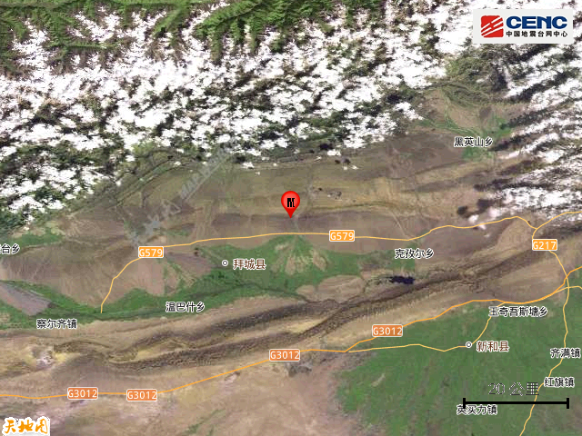 新疆阿克苏地区拜城县发生3.0级地震,震源深度20千米
