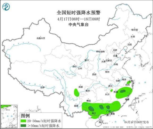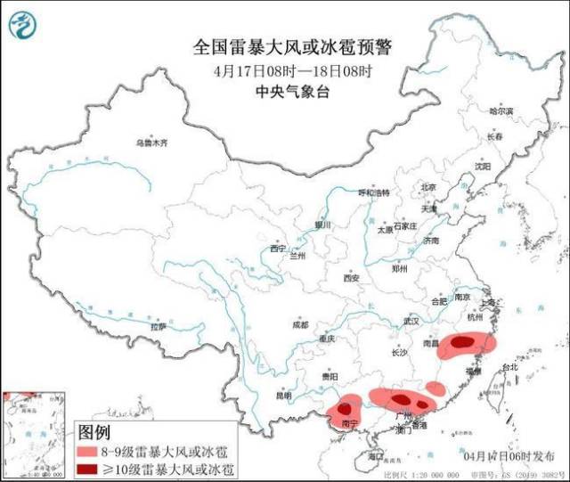预计4月17日08时至18日08时,江西东北部、浙江南部、福建北部、广西东部和西南部、广东中东部和西北部等地的部分地区将有8-10级雷暴大风或冰雹天气,局地风力可达11级以上;江西中北部和南部、浙江、福建、四川南部、贵州西南部、云南东南部、广西、广东等地的部分地区将有短时强降水天气,最大小时雨量30-60毫米,局地可达70毫米以上。