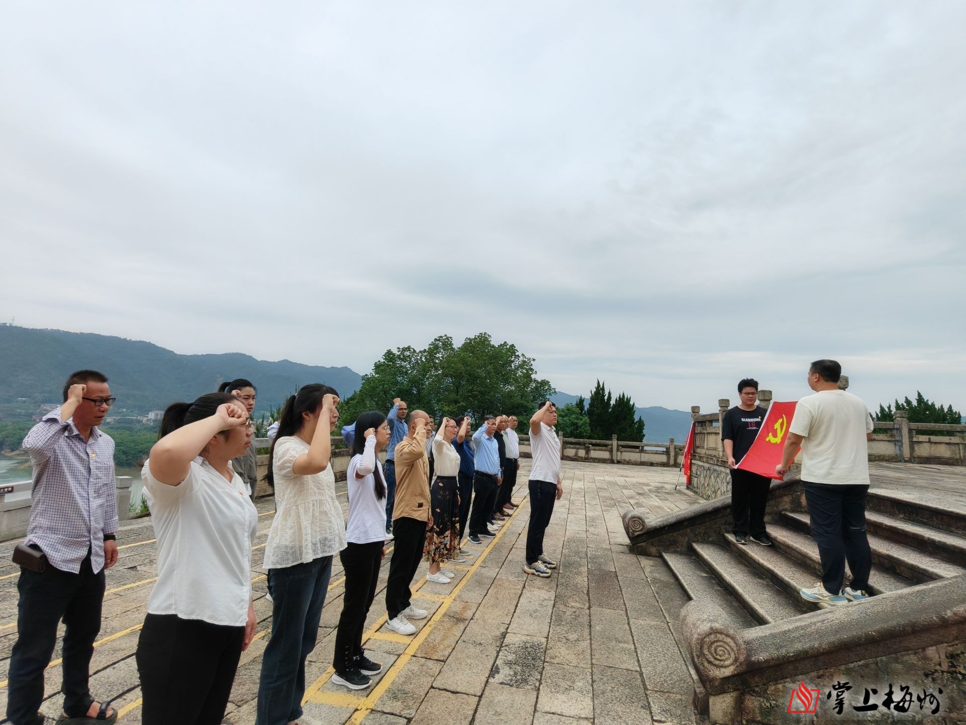 掌上梅州讯 5月19日,漳州市诏安县秀篆中学党支部赴梅州老区苏区,组织开展以“追寻红色足迹,传承红色精神”为主题的党日活动,该校党支部书记、校长林俊彬带领学校党员教师等20多人前往大埔三河坝战役纪念园、叶剑英纪念园等地参观学习。