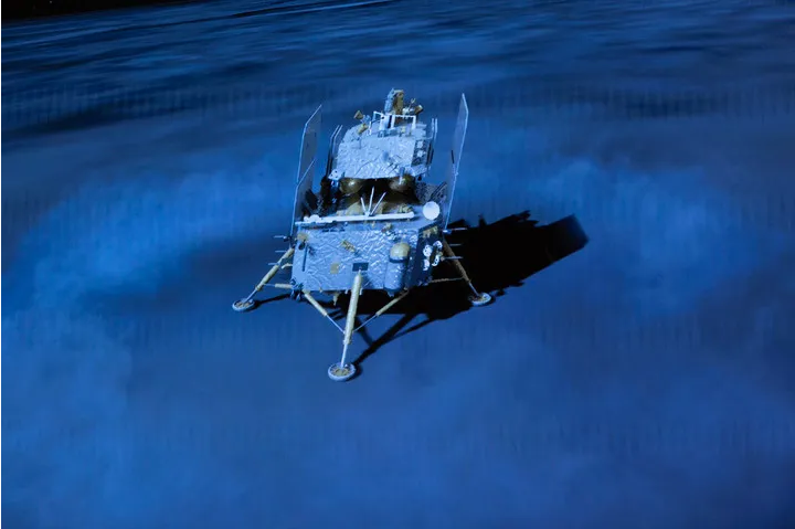 “关键缓冲”确保安全落月——即将到达月面时,发动机关闭,利用缓冲系统保障组合体以自由落体方式到达月面,最终平稳着陆在月球背面南极-艾特肯盆地。