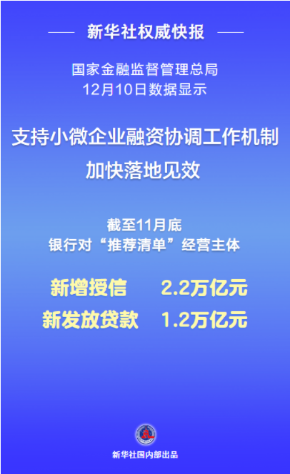 国家金融监督管理总局12月10日数据显示,支持小微企业融资协调工作机制启动以来,各地方、各银行快速响应,及时启动机制各项工作,摸排企业经营情况和融资需求,积极提供贷款支持,取得阶段性成效。