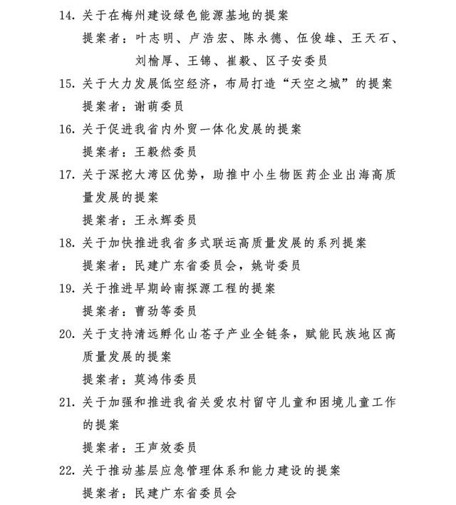 1月14日,广东省政协十三届三次会议在广州开幕。大会听取中国人民政治协商会议广东省委员会常务委员会关于政协十三届二次会议以来提案工作情况的报告,并对《关于促进我省科技成果转化的系列提案》等46件优秀提案、丁邦晗等22名履职表现突出的委员予以表彰。具体名单如下: