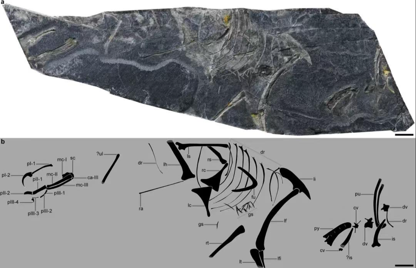 该化石于2023年11月在政和大溪盆地发现,经过长达一年的室内修复和研究分析,研究团队确定了该化石属于鸟类。虽然化石不完整,但是它保存了很多重要信息。例如具有分离的肩胛骨和乌喙骨,腰带骨骼显现出很多进步的特征。其中最重要、最特殊的地方就是具有愈合的尾综骨,这是构成现代鸟类体型的基石。