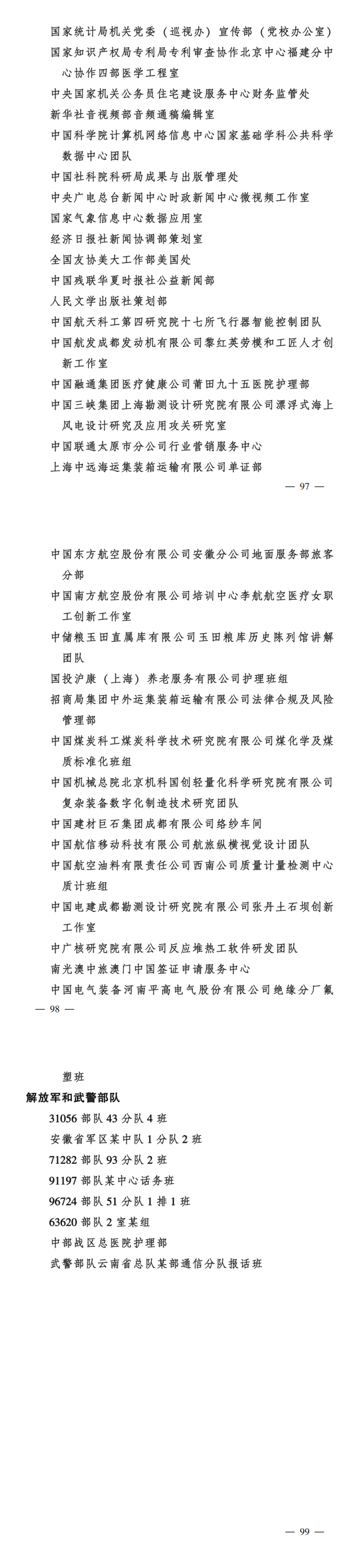 全国三八红旗集体名单