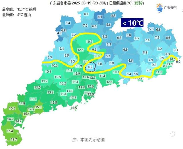 19-20日,全省晴到多云。20日早晨最低气温:粤北、粤东和珠江三角洲北部市县6~9℃,雷州半岛13~16℃,其余市县10~13℃。