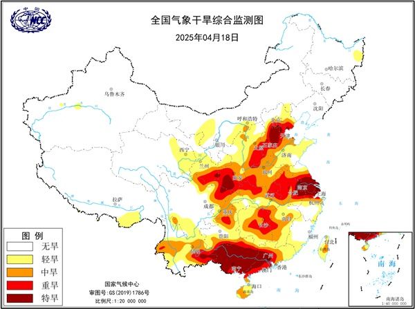 截至18日,长三角地区和华南地区都出现明显气象干旱,其中广西大部气象干旱都已达特旱级别。