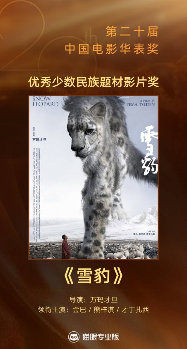 目前颁奖活动已经开始,并率先开出优秀少数民族题材影片奖、优秀少儿影片奖、优秀农村题材影片奖、优秀青年创作影片奖四个奖项。《雪豹》获得优秀少数民族题材影片奖,《小马鞭》获得优秀少儿影片奖,《我本是高山》获得优秀农村题材影片奖,《独行月球》获得优秀青年创作影片奖。