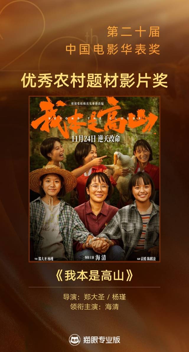 中国电影华表奖是中国电影政府奖,由国家电影局主办并组织评选及颁奖,与中国电影金鸡奖、大众电影百花奖并称中国内地电影三大奖。
