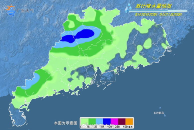 今日(5月20日),韶关、清远、茂名北部、肇庆、广州北部等市县雨势依然强烈,朋友们出门记得带伞。