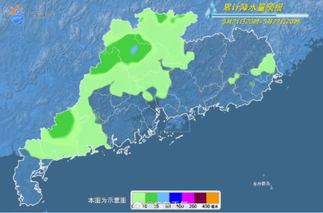 21日,清远和肇庆市县有中到大雨,局部暴雨,其余市县有分散(雷)阵雨,局部大雨或暴雨。我省最高气温:韶关、清远和珠三角北部市县28℃-32℃,其余市县32℃-35℃。