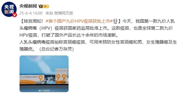 据央视新闻消息,今天,我国第一款九价人乳头瘤病毒(HPV)疫苗获国家药监局批准上市。这款疫苗,也是全球第二款九价HPV疫苗,打破了国外产品长达十余年的市场垄断。
