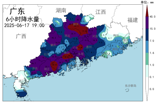 持续降雨带来降温效果。17日白天,广东中东部市县最高气温较16日下降2℃-6℃,珠三角西部市县较16日持平或上升1℃,其余市县较16日下降1℃-2℃。