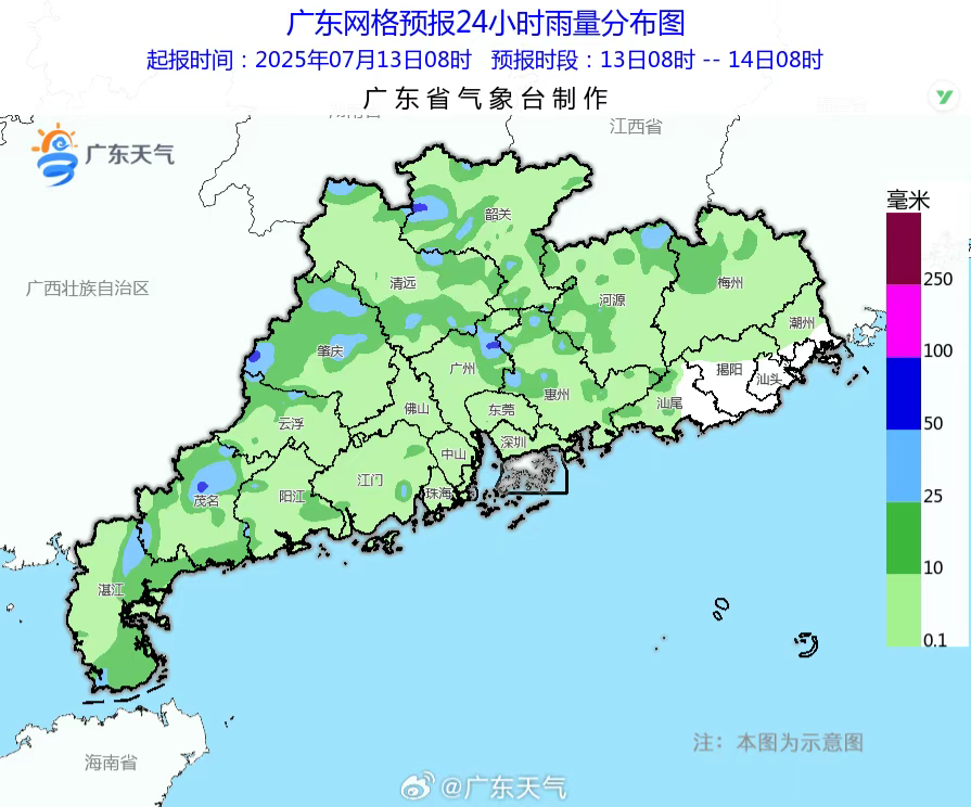 未来三天,副高逐渐加强西伸控制广东,其间略有摆动,广东渐转晴热,而粤北处于副高的边缘,低层有弱切变影响,雷雨会较其他地区要明显一些。