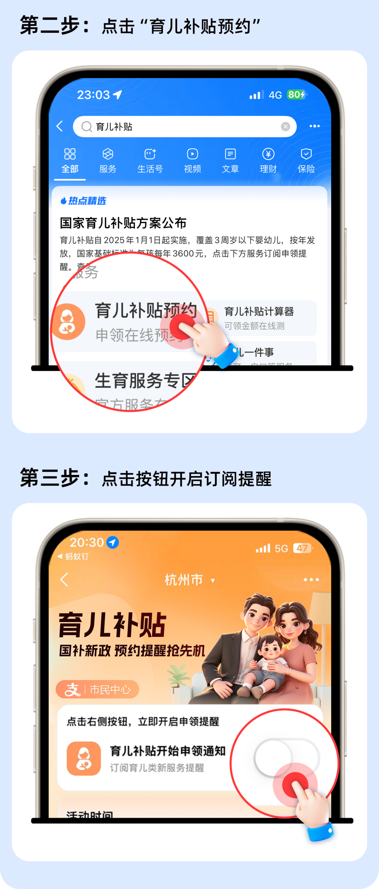 7月28日,国家育儿补贴制度实施方案正式公布。即日起,符合规定的用户可上支付宝搜“育儿补贴”,一键预约,开启申领通知,最高可领10800元。