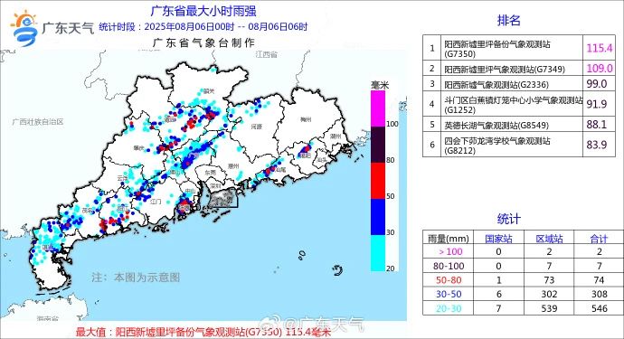 据广州市生态与农业气象中心监测,广州市8月2日至5日出现今年以来最强暴雨过程,达到特别严重影响等级,为本世纪以来8月第2强暴雨过程。
