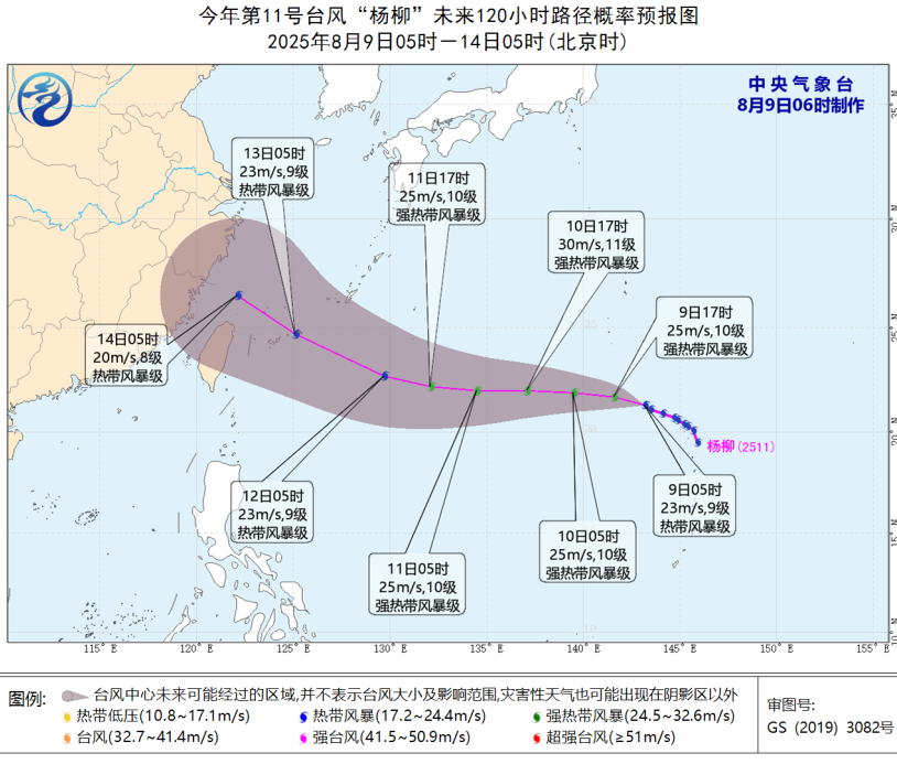 今年第11号台风“杨柳”(热带风暴级)的中心