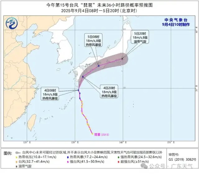 9月4日2时,琉球群岛以东洋面的热带低压加强为今年第15号台风“琵琶”(热带风暴级;英文名称:Peipah;名字来源:中国澳门;名称意义:宠物鱼),08时其中心位于日本鹿儿岛偏南方向约205公里的洋面上,中心附近最大风力8级(18米/秒),预计台风“琵琶”趋向日本,对我国没有影响。