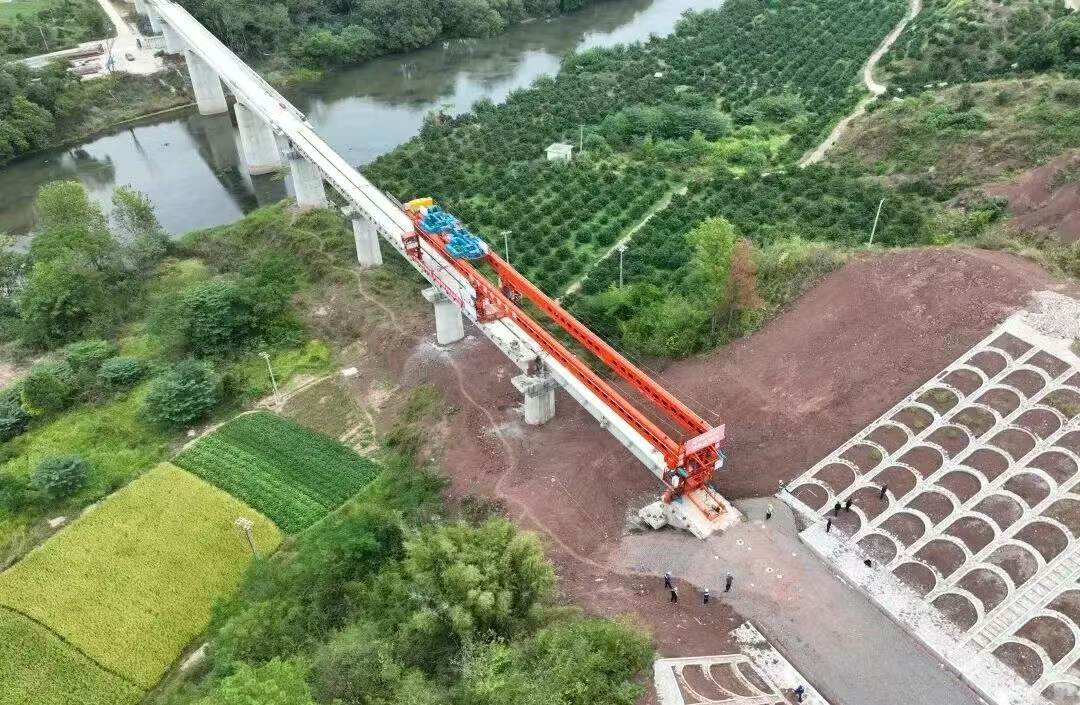 绵水特大桥位于江西省瑞金市境内,是瑞梅铁路全线最长桥梁和控制性工程,该桥全长3052米,由9跨连续梁和79孔T梁组成,桥梁分别上跨济广高速公路和两次跨越绵水河,施工组织和安全管理难度大。