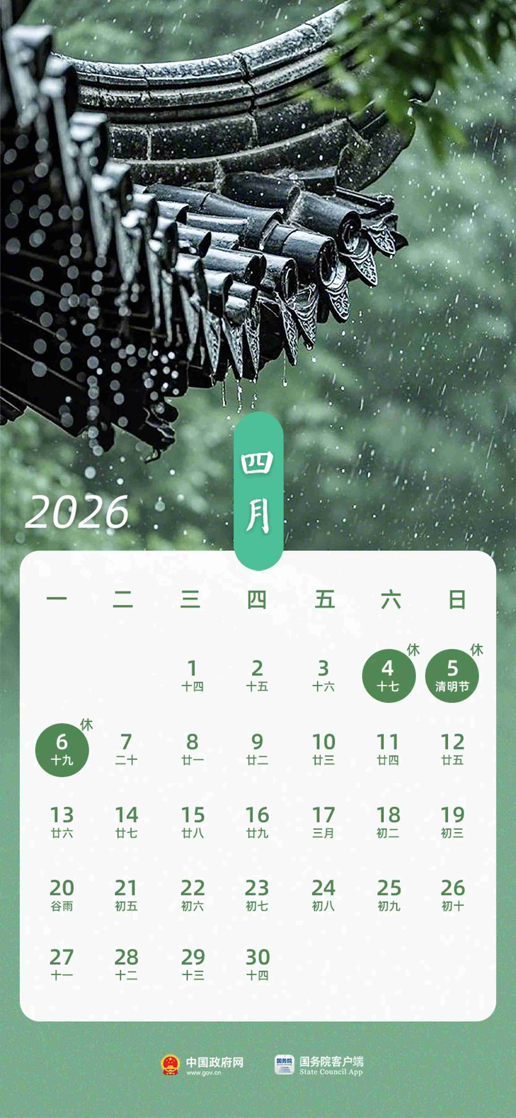 三、清明节:4月4日(周六)至6日(周一)放假,共3天。