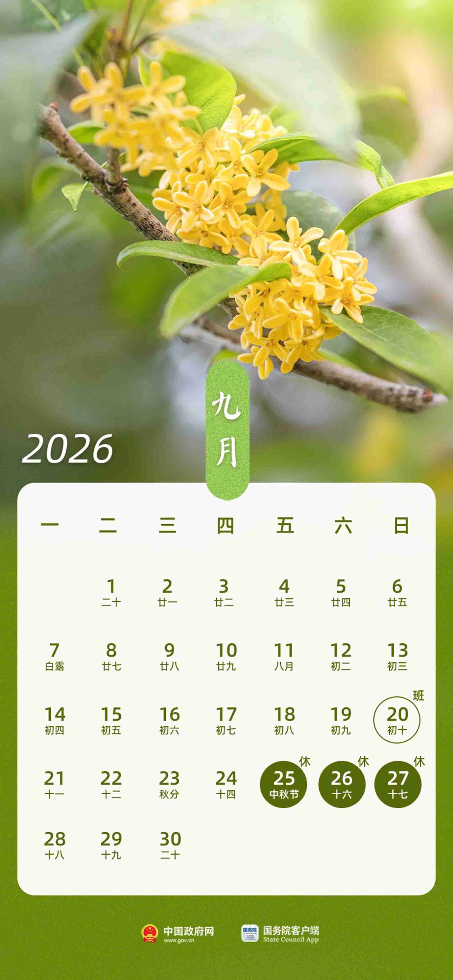 六、中秋节:9月25日(周五)至27日(周日)放假,共3天。