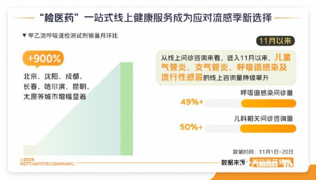 目前,美团买药的居家快检服务的8个重点城市在近期流感高发季运力提升了近一倍。