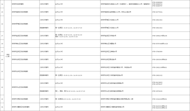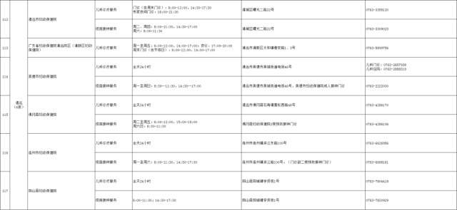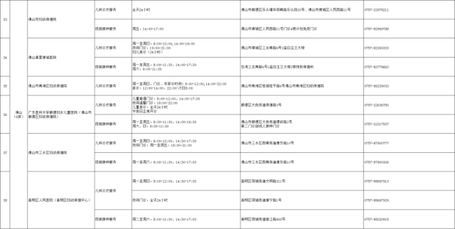 广东省提供儿科诊疗、疫苗接种服务的妇幼保健机构名单
