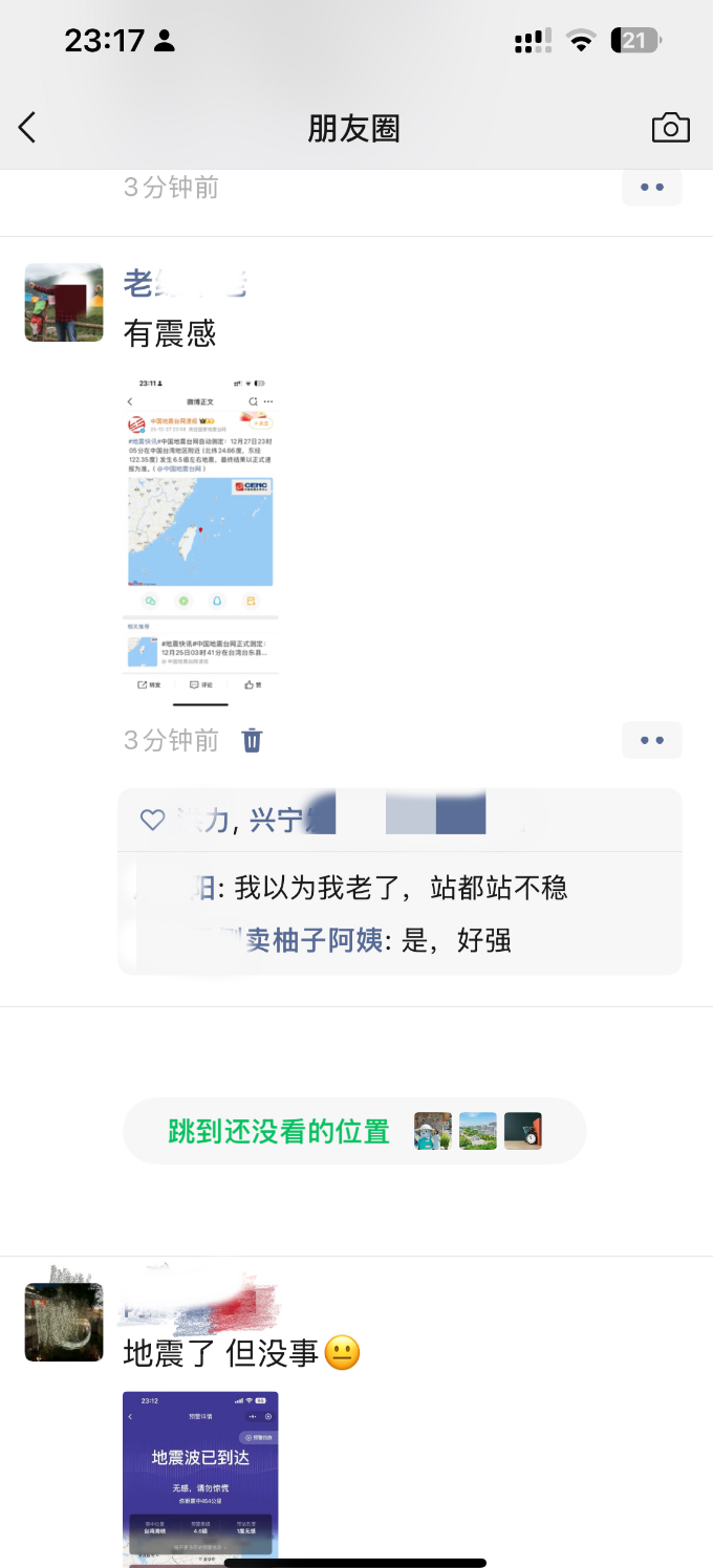 台北持续摇晃近一分钟。福建福州、泉州等地震感强烈。