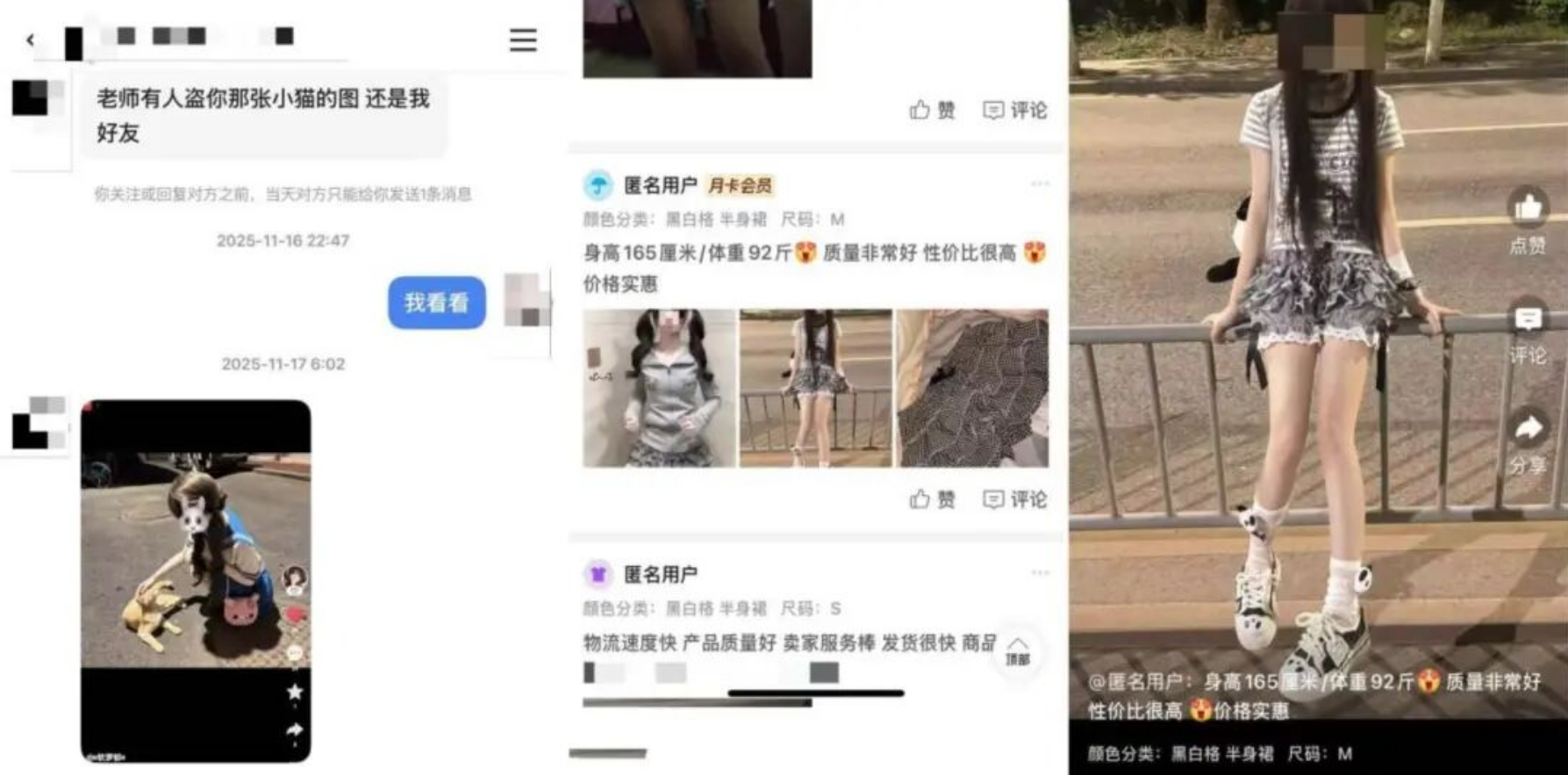 从2024年下半年至今,17岁的四川女孩湉湉(化名)一直深陷照片被盗用的困扰。“我本来就是平时喜欢拍好看照片的小女孩,有些人会先假装跟我当朋友,加微信天天看我朋友圈。”湉湉表示,一些盗图者会直接搬运她朋友圈里的图片,直接发到他们的社交平台上,常常被粉丝或好友误认为是湉湉的小号。
