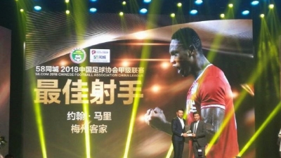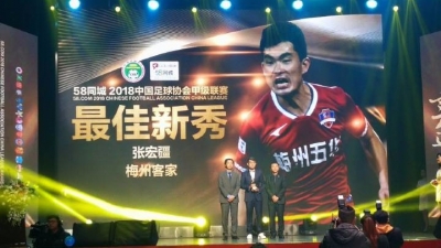 2018中国足球协会甲级联赛颁奖典礼15日在北京举行。梅州客家队荣获三项大奖,其中梅州客家足球俱乐部总经理曹阳荣获优秀经理人奖,马里荣膺最佳射手,张宏疆荣获最佳新秀。