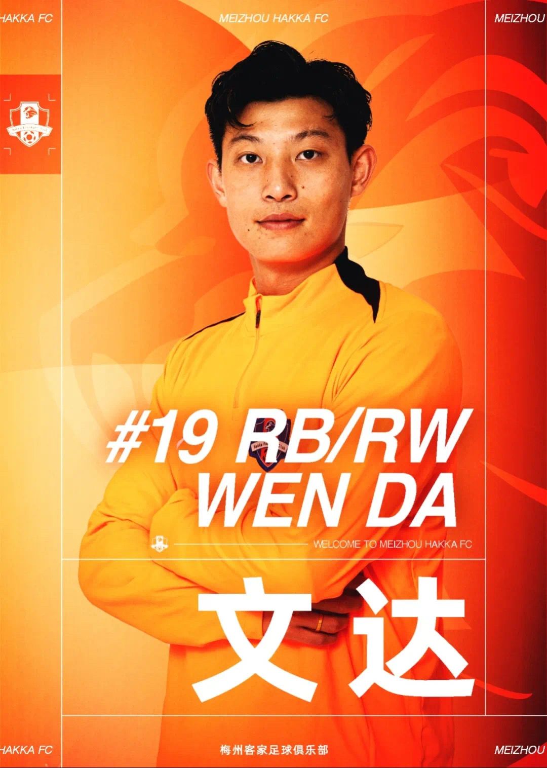 文达,1999年10月出生,身高186cm,湖南长沙籍,场上司职后卫。先后效力于北京国安、北京北体大、武汉卓尔、无锡吴钩、青岛红狮、沧州雄狮等队。文达具备优秀的身体素质,一对一防守表现出色。新赛季他将身披19号球衣代表梅州客家征战中超联赛及各项赛事。